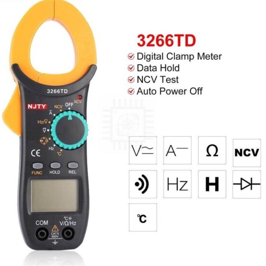 Ampe kìm Đồng hồ kẹp dòng vạn năng NJTY 3266TD đo tụ, tần số, nhiệt độ, điện trở, điện áp- Thiết bị có chức năng phát hiện điện áp trên thiết bị, dây dẫn không cần chạm trực tiếp (NCV)