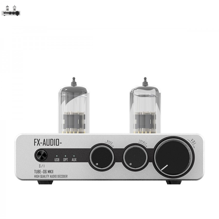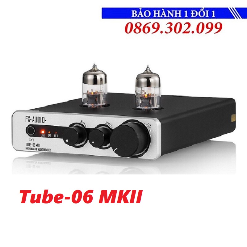 FX-Audio TUBE-06 MKII là một bộ khuếch đại [Pre Ampli] với mức giá rất tốt và hiệu quả. Bóng khuếch đại được sử dụng là 6N3. Nó được liên kết với mạch Dac giải mã sử dụng chip DAC ESS ES9018K2M, giao diện USB CM6642 và các linh kiện chất lượng khác như NE5532 và OPA2134 AOs. Do đó, nó có khả năng mang đến những bản trình diễn âm nhạc đầy nhạc tính & ấm áp. Nó cũng hỗ trợ giải mã các tệp nhạc số PCM 24bit 192kHz.
