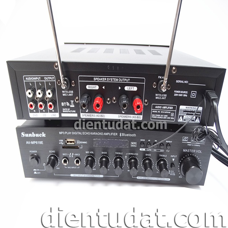 Bộ Ampli Karaoke Bluetooth 220VAC 2*100W Kèm 2 Micro Không Dây - DE618EThông số kỹ thuật: