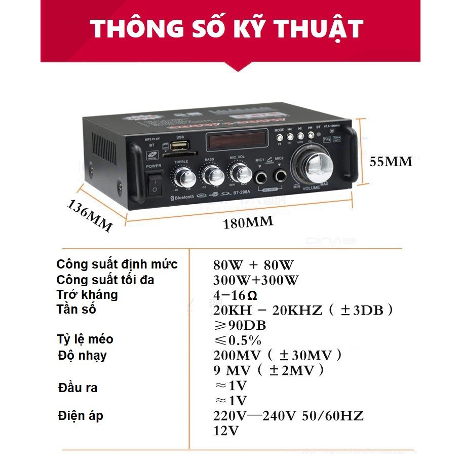 Thiết Bị Âm Thanh > Amply và đầu chỉnh âm || [Mã 44ELSALE2 giảm 7% đơn 300K] Ampli Karaoke Mini Bluetooth BT-298ACòn hàng