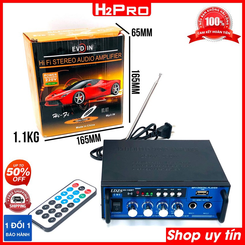 Giới thiệu Ampli mini bluetooth AV-136BT H2PRO 500W USB-Thẻ nhớ-12V-220V, amply mini KARAOKE giá rẻ (tặng bộ quà 50K)