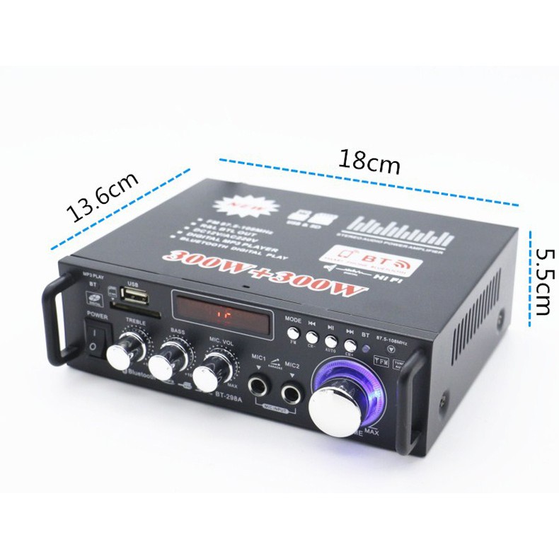 Kích thước nhỏ gọn:18 x 13.6 x 5.5 cmCông suất 300W x 2