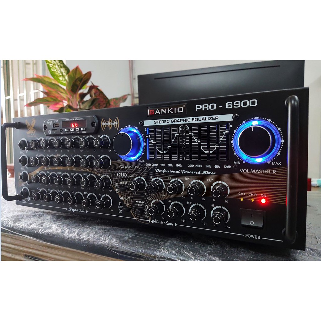 Amply Bluetooth Karaoke SANKIO 6900 - 16 sò lớn Toshiba 1943 & 5200 - 4 tụ nguồn - 2 quạt gió làm mát
