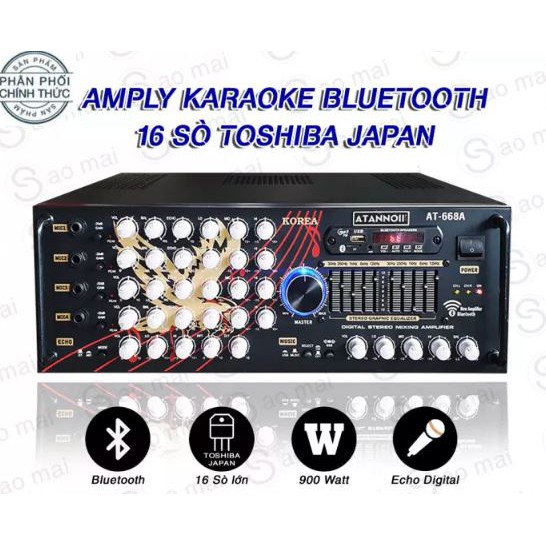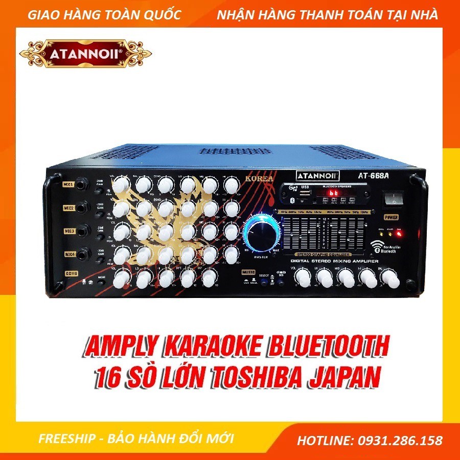 Amply USB Bluetooth - Ampli Karaoke Gia Đình ATANNOII AT-668A 16 sò Nhật SA1943 - SC5200, 2 quạt gió - Dòng cao cấp