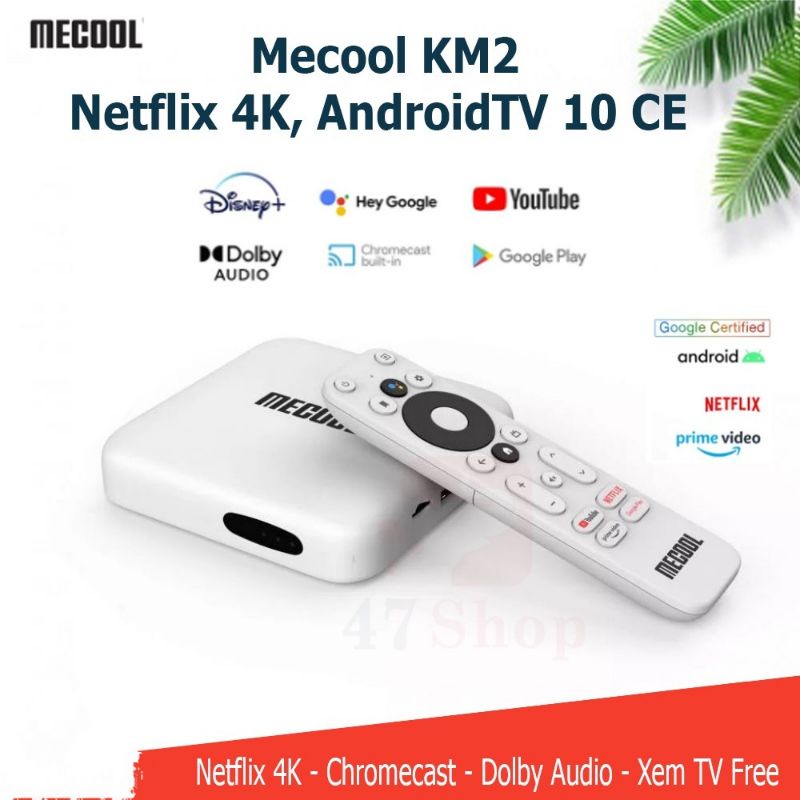 Mecool KM2 là một TV Box mới nhất của hãng Mecool, chạy trên Hệ Điều Hành Android TV 10 OS có chứng chỉ Google (CE). Thiết bị hỗ trợ Voice giọng nói với Google Assistant, tích hợp Chromecast. Bên cạnh đó, Mecool KM2 có các chứng nhận hàng đầu từ các hãng cung cấp nội dụng lớn: Google, Netflix 4K, và Prime Video.Mecool KM2 có thể streaming video hiển thị lên đến 4K@60fps từ các dịch vụ streaming phổ biến như: Disney +, HBO, v. v. . Thiết bị cũng hỗ trợ 4K HDR, HDR10, và Âm Thanh Dolby.