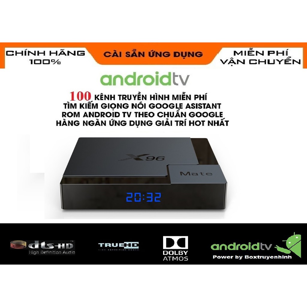 Thiết Bị Điện Gia Dụng > Tivi & Phụ kiện > Tivi box & Đầu thu kĩ thuật số || Android Box X96 Mate, Android TV 10, Allwinner H616, Ram 4GB, Rom 32GB, Wifi 2.4Ghz/5Ghz, Bluetooth 5.0, Lan 100MbCòn hàng