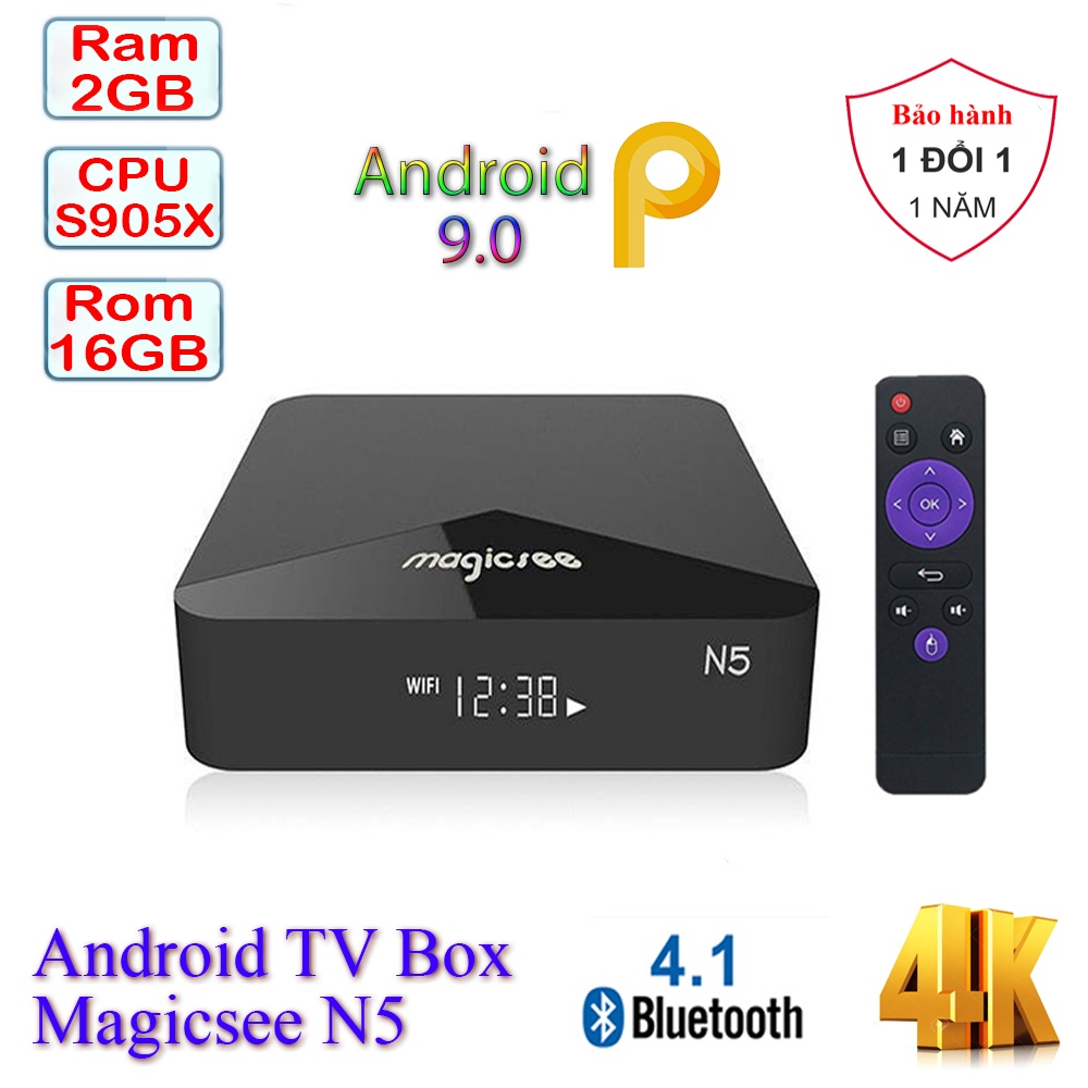 Thiết Bị Điện Gia Dụng > Tivi & Phụ kiện > Tivi box & Đầu thu kĩ thuật số || [Mã 44ELSALE2 giảm 7% đơn 300K] Android Tivi Box Magicsee N5 - Android 9.0 - Chip S905X - Ram 2GB - Rom 16GB - Xem phimCòn hàng