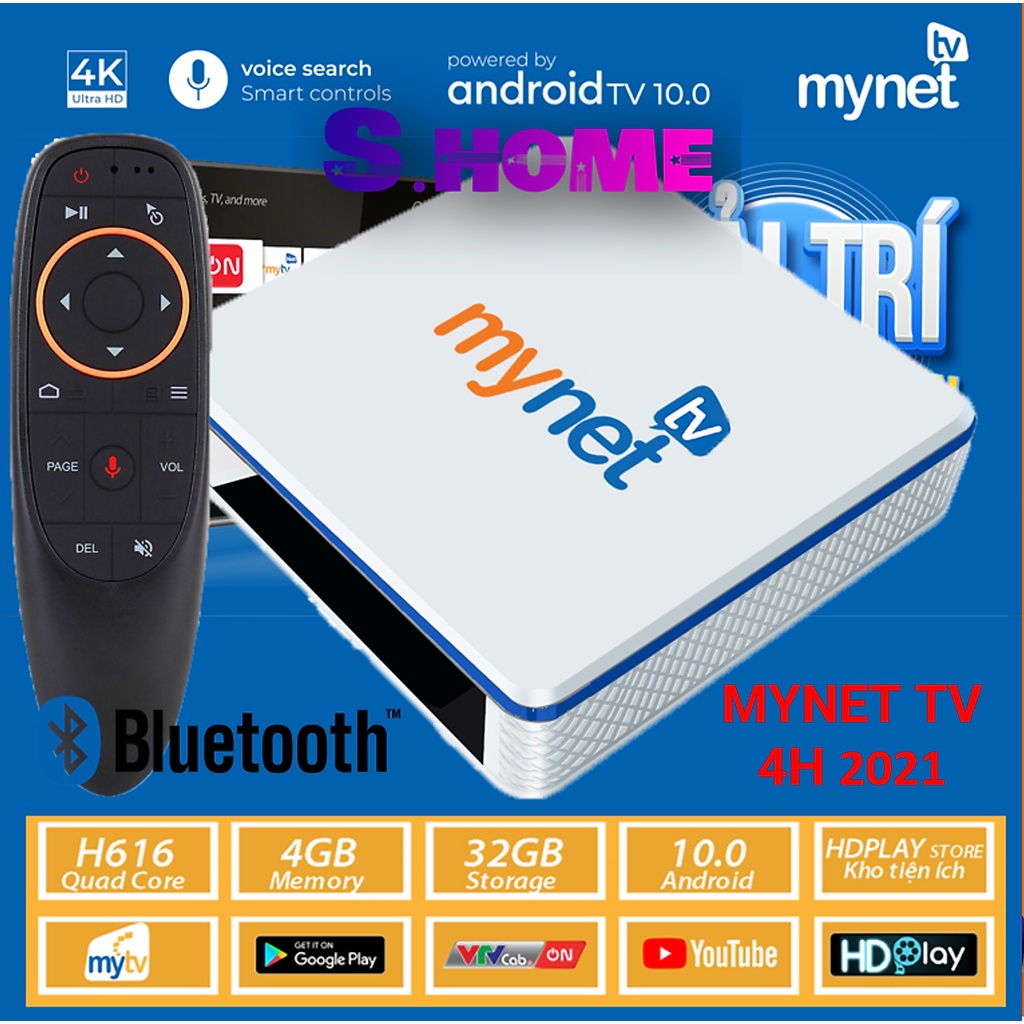 Android tivi box MYTV MYNET TV 4H RAM 4G, ROM 32G, Hệ điều hành Android 10, BLUETOOTH, Có tặng điều khiển giọng nói