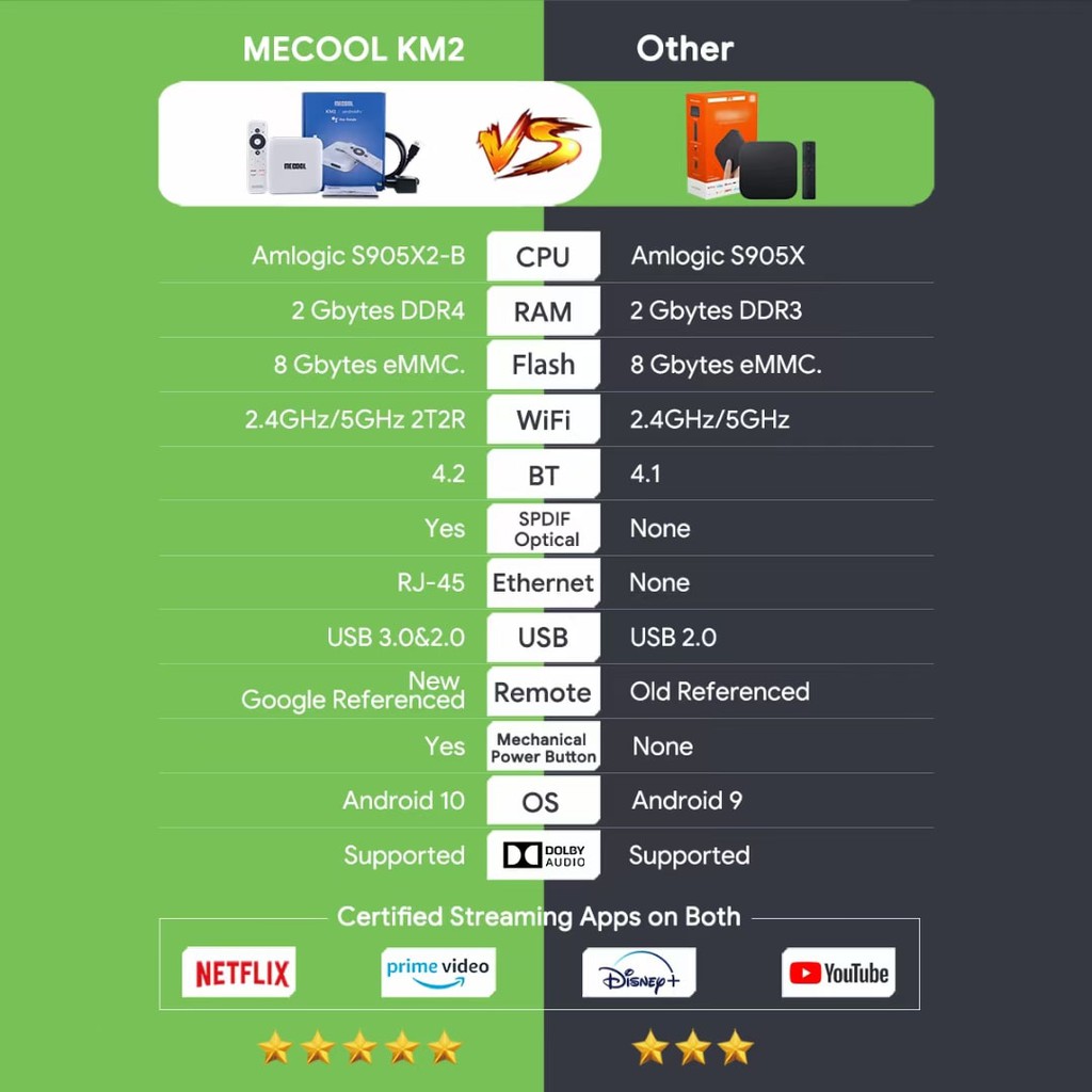 Mecool KM2 có thể streaming video hiển thị lên đến 4K@60fps từ các dịch vụ streaming phổ biến từ điện thoại, máy tính bảng, #laptop 1 cách dễ dàng