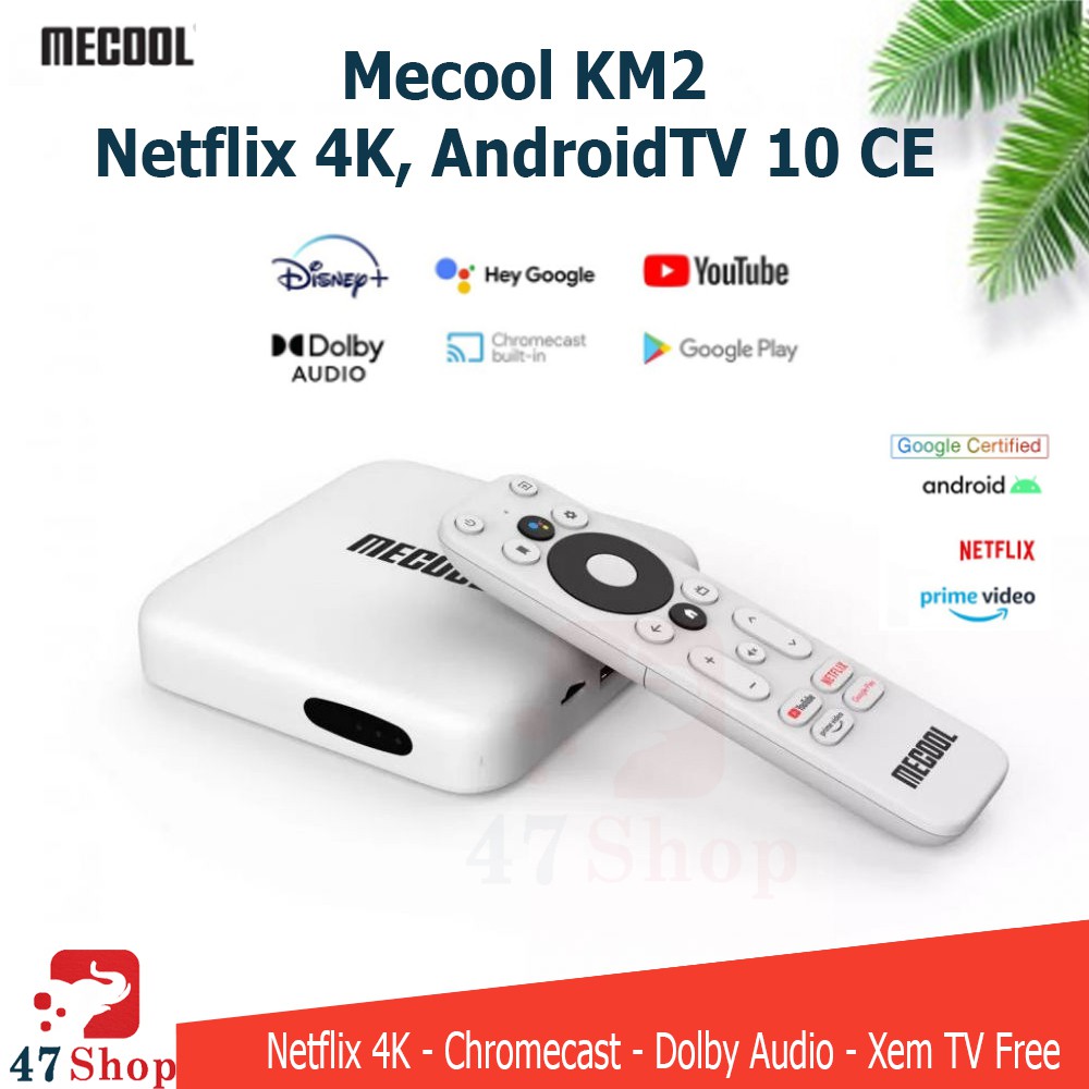 47SHOP cam kết hàng chính hãng #MECOOL. Nếu không chính hãng chúng tôi đền tiền 1 gấp 3 lần giá trị sản phẩm kèm lời xin lỗi. #47SHOP là đại lý phân phối các sản phẩm MECOOL được MECOOL ủy quyền. Các anh chị có thể kiểm chứng từ hãng.Mecool KM2 là một TV Box mới nhất của hãng Mecool, chạy trên Hệ Điều Hành Android TV 10 có chứng chỉ Google (CE). Thiết bị hỗ trợ #Voice giọng nói với #Google #Assistant, #Chromecast tích hợp sẵn. Bên cạnh đó, Mecool KM2 có các chứng nhận hàng đầu từ các hãng cung cấp nội dụng lớn: Google, Netflix 4K, Prime Video.