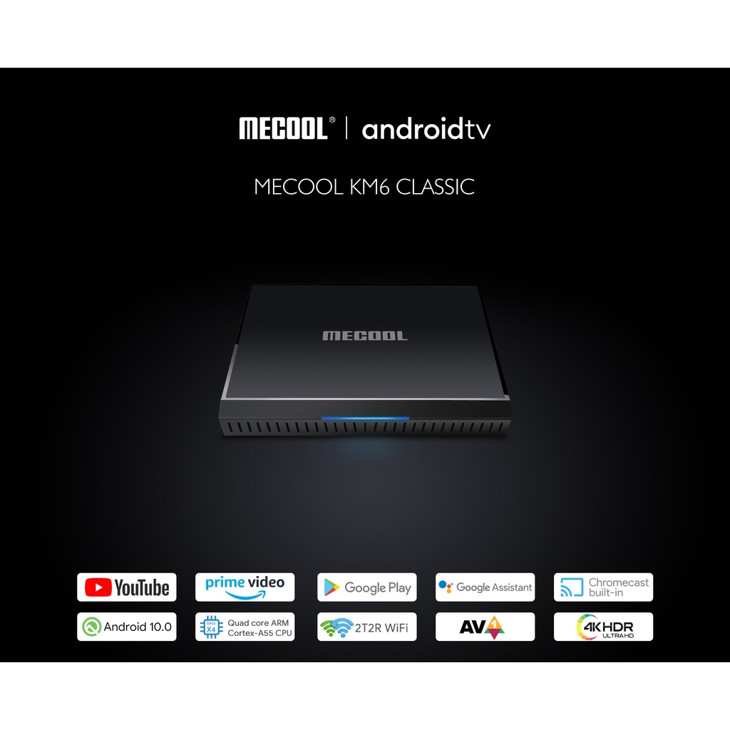 Android TV Box Mecool KM6 Classic là sản phẩm hỗ trợ các dòng TV phổ thông thành SmartTV chạy Android với rất nhiều giải trí khác biệt so với TV phổ thôngMecool KM6 Classic được trang bị HĐH AndroidTV 10 được Google cấp phép. HĐH này sẽ khác biệt với phần lớn những dòng TV Box hiện nay trên thị trường sử dụng HĐH tùy biến từ bản Android Tablet hoặc kể cả bản AndroidTV tùy biến không được Google cấp phép