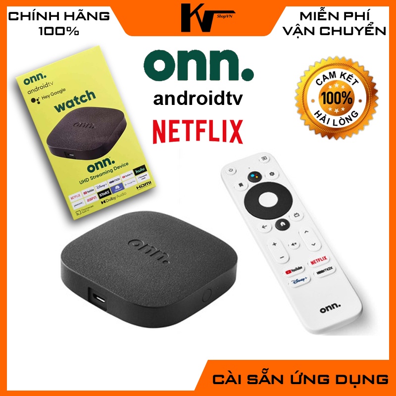 Android TV Box ONN TV Streaming, Android 10 chính chủ, Điều khiển giọng nói Bluetooth, Chứng chỉ Chrome cast, Netflix