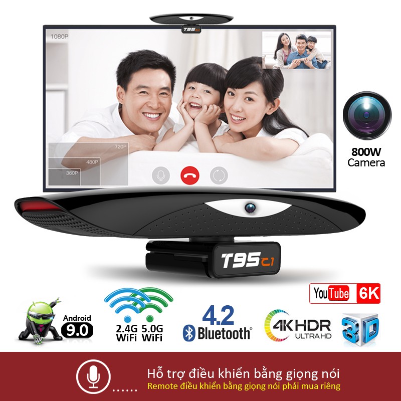 Android tv box, tivi box tích hợp camera và micro có thể nghe gọi video trực tiếp trên tivi bảo hành 12 tháng T95C1