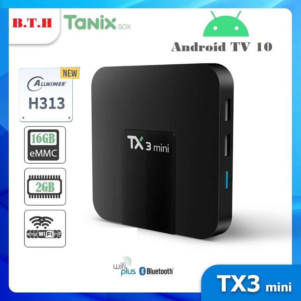 Android TV Box TX3 Mini H313/H616, Android TV 10, Wifi 2 băng tần 2.4GHZ/5GHZ, Bluetooth 4.1, Ram 2GB, Bộ nhớ trong 16GB