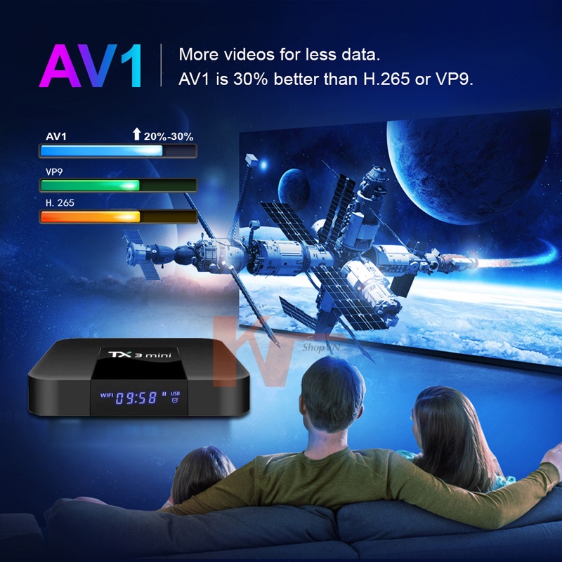 - Sản phẩm TV Box đầu tiên tại thị trường Việt Nam sử dụng vi xử lý thế hệ mới Amlogic S905W2, hỗ trợ định dạng nén video thế hệ mới nhất AV1 cho khả năng chơi video Online với chất lượng cao và mượt mà nhất.