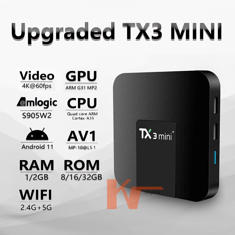 Android TV Box TX3 Mini Plus, New 2022, Amlogic S905W2, Android 11, hỗ trợ tiêu chuẩn AV1 mới nhất, Tìm kiếm giọng nói