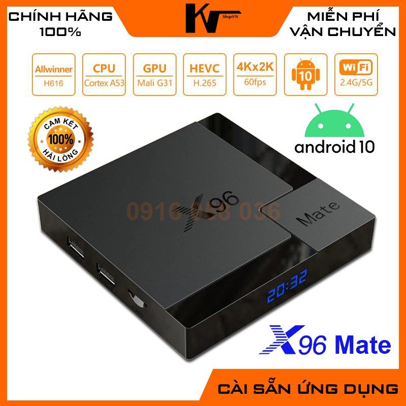 Android TV Box X96 Mate, Android 10.0, Ram 4GB, Bộ nhớ 32GB, Wifi 2.4Ghz/5.0Ghz, Bluetooth 5.0➢ GIỚI THIỆU SẢN PHẨM: