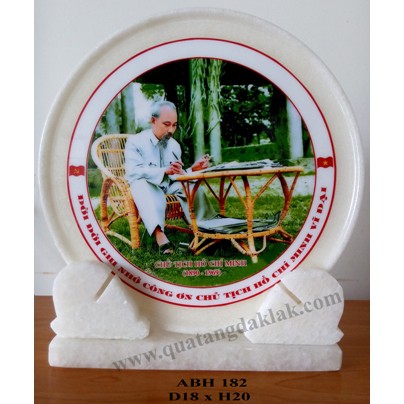 Ảnh Bác Hồ Ghế Mây 20cm- Chất liệu : đá trắng tự nhiên