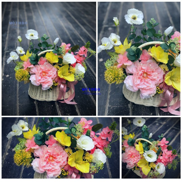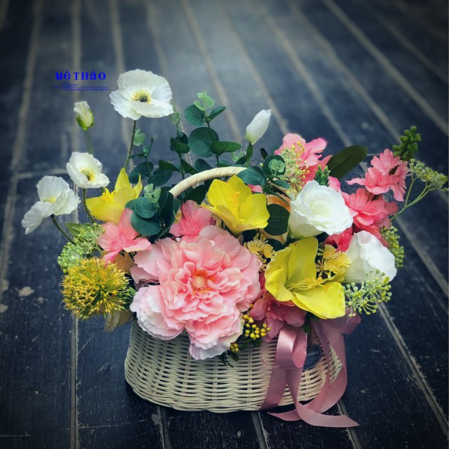 CÓ ẢNH THẬT VÀ VIDEO THỰC TẾ Giỏ Hoa Giả Lụa Cao Cấp Phong Cách Hàn Quốc