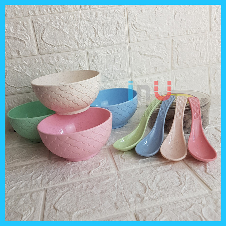 *** Kích thước:chén : 12.3cm x 6cm, muỗng :14.6cm x 3.7cm*** Chất liệu: nhựa lúa mì