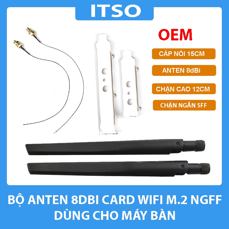 Anten cho card WIFI M2 NGFF trọn bộ cho máy bàn 6dpi SMABộ phụ kiện tăng tốc độ thu sóng cho card wifi (Sử dụng cho máy bàn)