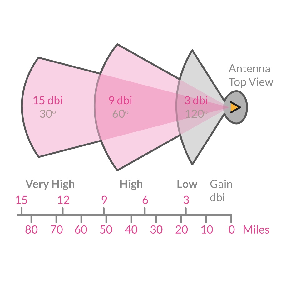 - Anten càng dài (dBI càng to) -> phát càng xa, vùng chết càng nhiều (do sóng ưu tiên phát theo 1 hướng cố định)