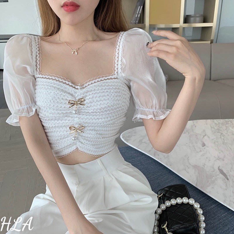 áo băng quấn nơ pha tay tơ❗️trắng / đen