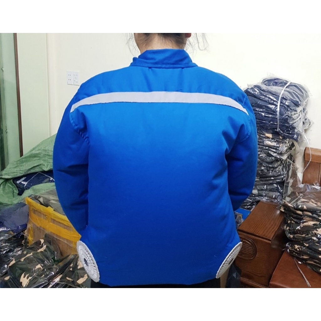 - Áo sử dụng 2 quạt thổi không khí từ ngoài làm mát, giảm nhiệt độ, điều hoà toàn bộ cơ thể.