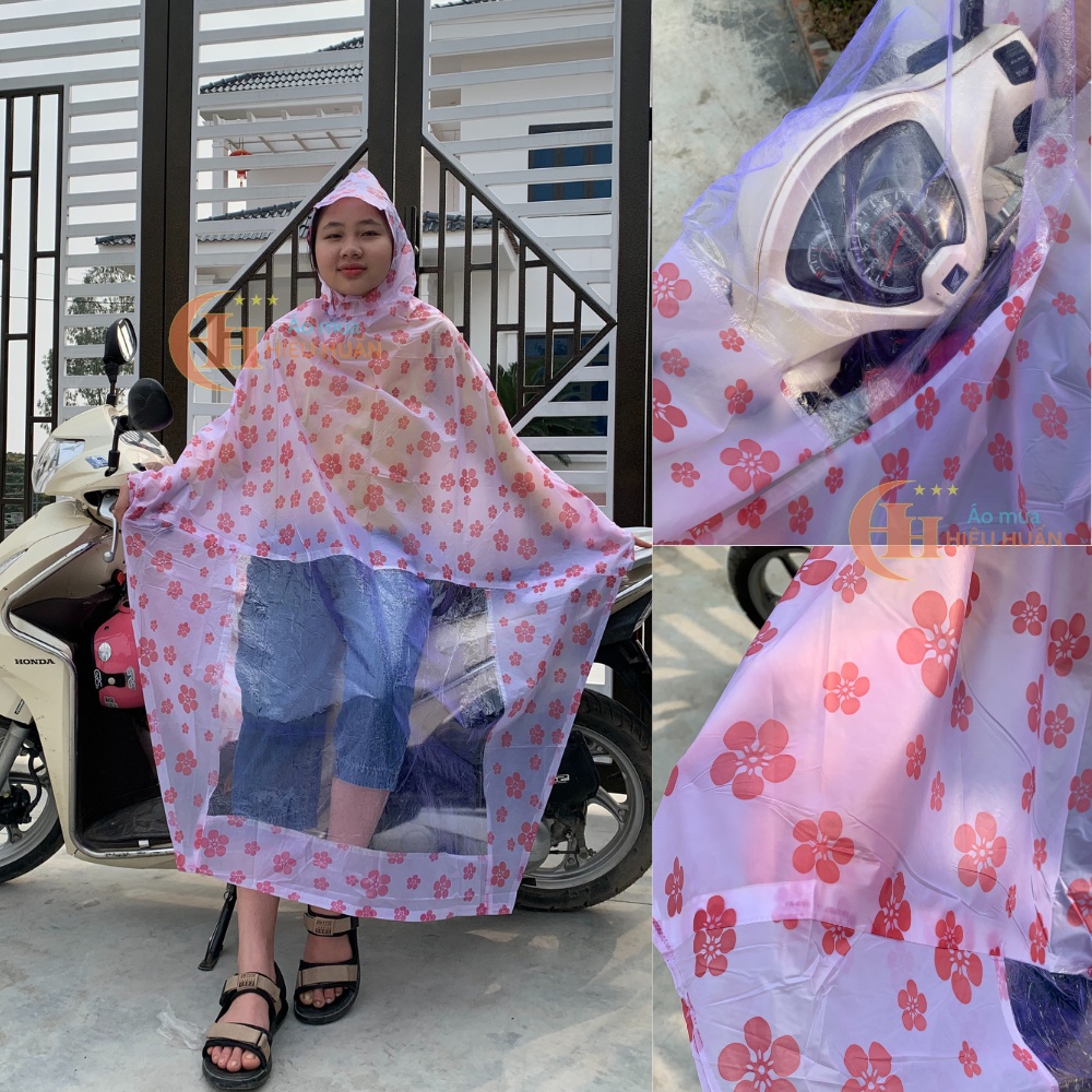 Giới thiệu Áo Mưa 1 Người Cánh Rơi Đi Xe Máy Họa tiết chấm bi và hoa đào, nhựa PVC chống thấm