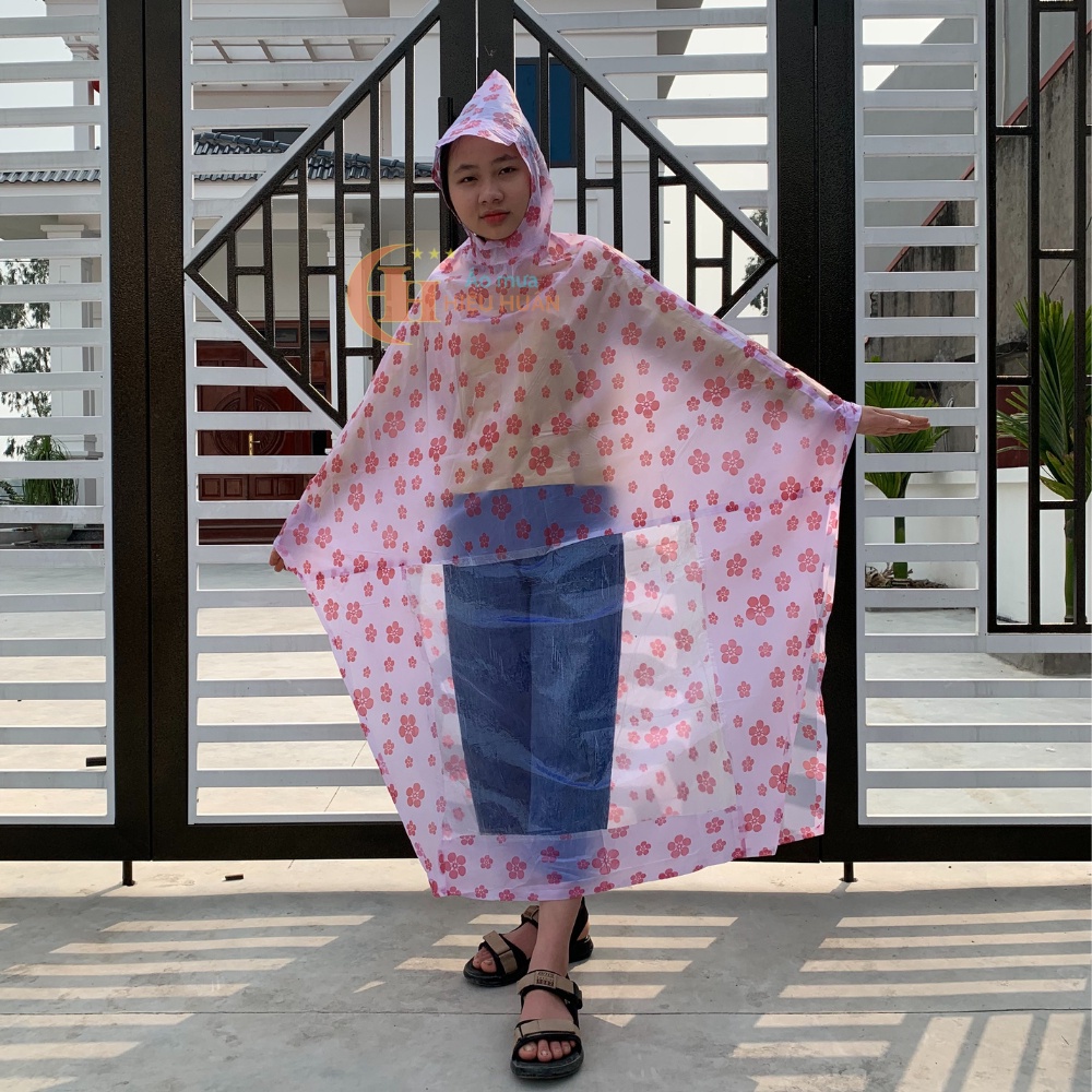 - Áo Mưa 1 Người Cánh Rơi Họa tiết chấm bi và hoa đào, nhựa PVC chống thấm được sản xuất từ nhựa PVC chống thấm tuyệt đối.