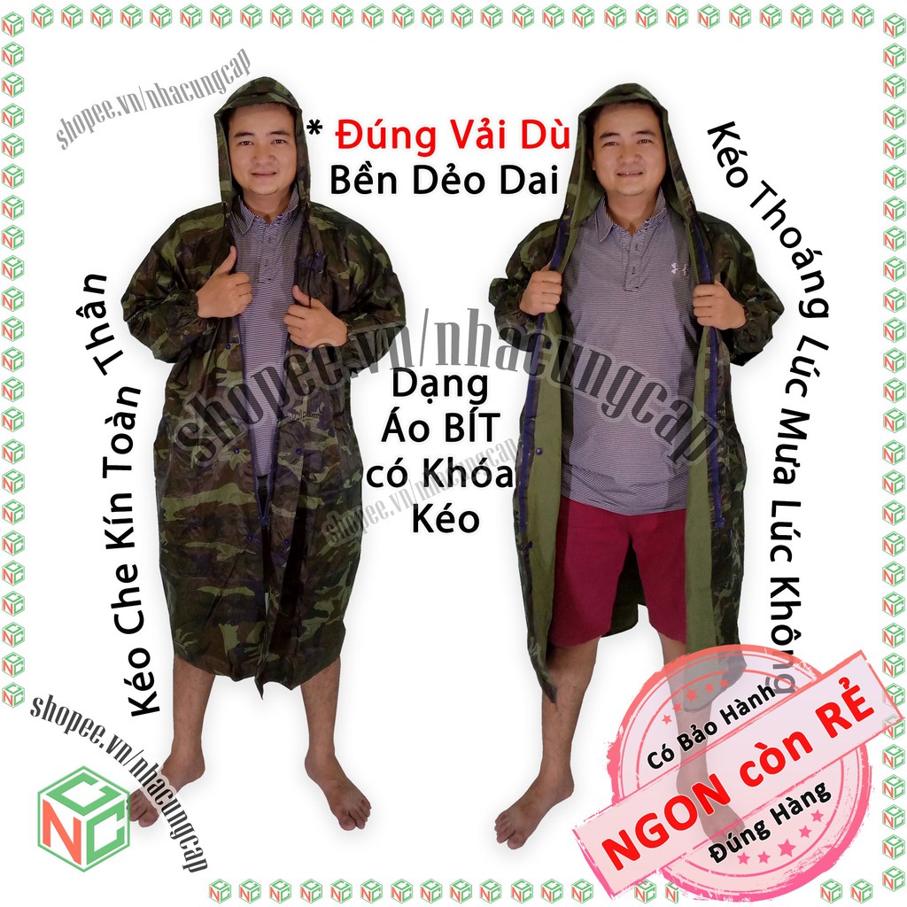 Áo mưa BÍT khóa kéo kín hông (không xẻ tà) vải dù loại tốt rằn ri lính Mỹ - NQL-AMBIT-US-KEO (Rằn ri)