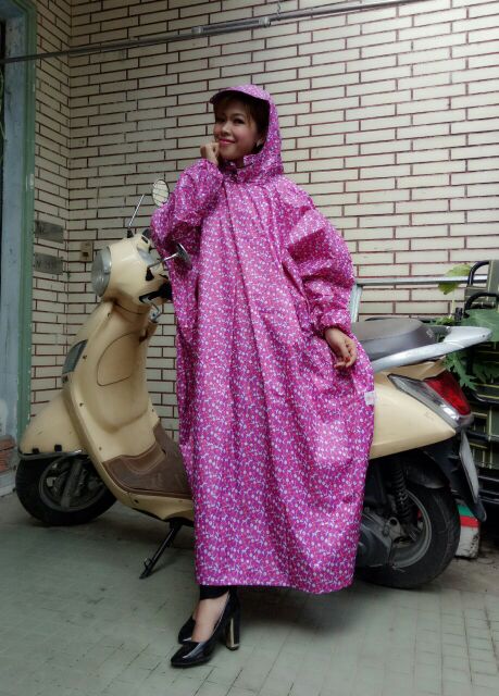 Áo mưa bit trùm hoa đang được nhiều chị em phụ nữ săn đón vì sự tiện lợi của nó.Áo được may kín 2 bên hông tránh bị tạt nước