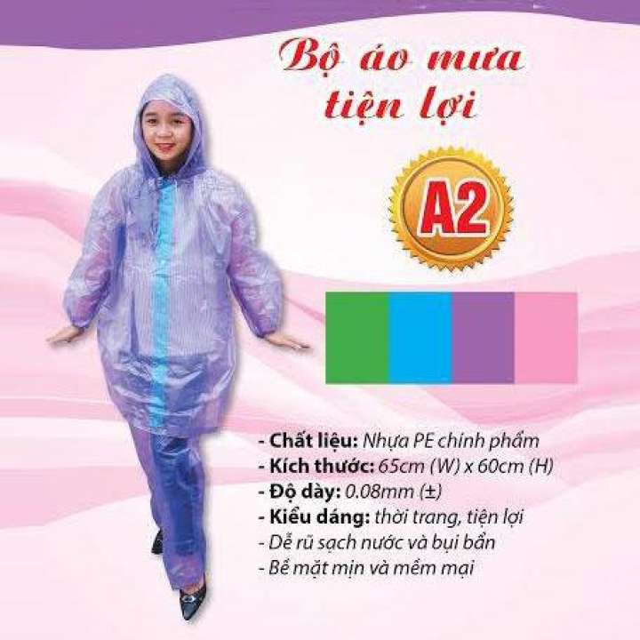 Được làm bằng chất liệu nhựa vi sinh dẻo dai, mềm mại, trọng lượng nhẹ và không độc hại, thân thiện với môi trường.Kiểu dáng thời trang giúp bạn an tâm khi trời mưa và vẫn khoe được những trang phục bên trong.