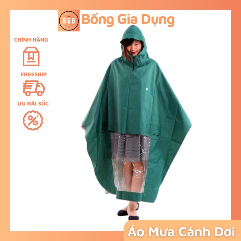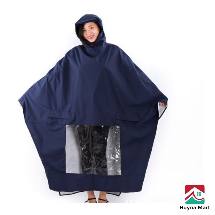 Áo Mưa Cánh Dơi Vải Dù Siêu Dai Họa Tiết Trơn Dáng To Trùm- Áo mưa siêu nhẹ, thiết kế kiểu dáng cánh dơi, mặt trước áo mưa có bóng kính trong suốt tiện dụng khi đi ban đêm.