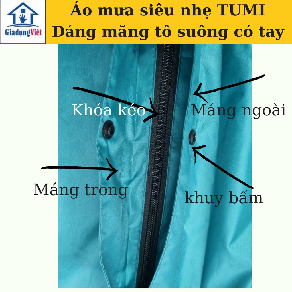 Giới thiệu Áo mưa măng tô TUMI NEW siêu nhẹ nam nữ chống thấm, dáng suông, tay dài, có mũ, khóa kéo kèm khuy bấm tiện lợi