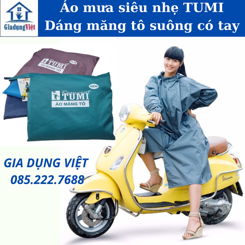 Áo mưa măng tô TUMI NEW siêu nhẹ nam nữ chống thấm, dáng suông, tay dài, có mũ, khóa kéo kèm khuy bấm tiện lợi