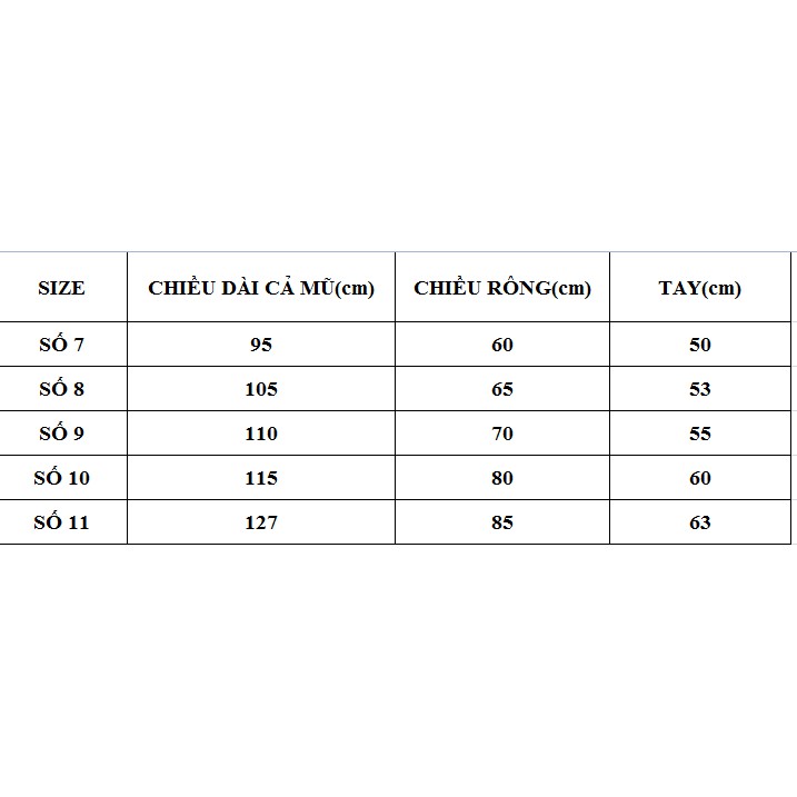 Số 11 . DÀi 127cm . R= 85cm . Tay 63cm