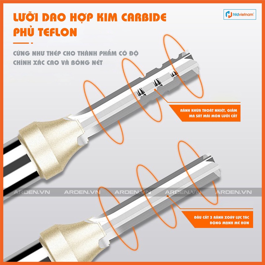 ✅ Thiết kế 3 lưỡi dao có khứa ngang tạo phôi nhỏ , dễ thoát , không gây kẹt rít ,cháy máy
