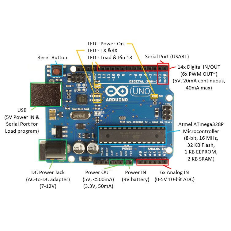 - Số chân Digital: 14 (hỗ trợ 6 chân PWM)