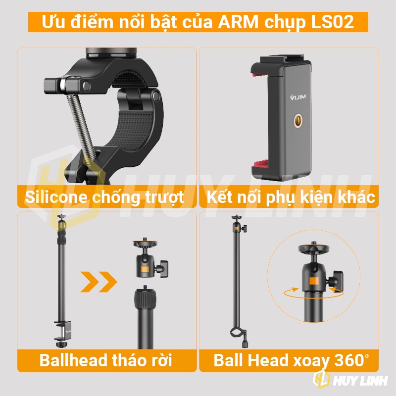 Giới thiệu Tay ARM kẹp cạnh bạn ULANZI VIJIM LS02 - Stand điều chỉnh chiều cao quay TopShot 105cm