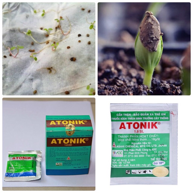 CÁC PHƯƠNG PHÁP ÁP DỤNG VÀ CÔNG DỤNG CỦA CHẤT KÍCH THÍCH SINH TRƯỞNG CÂY TRỒNG ATONIK 1.8SLNgâm hạt: Kích thích sự nảy mầm và ra rễ, phá vỡ trạng thái ngủ nghỉ của hạt giống.