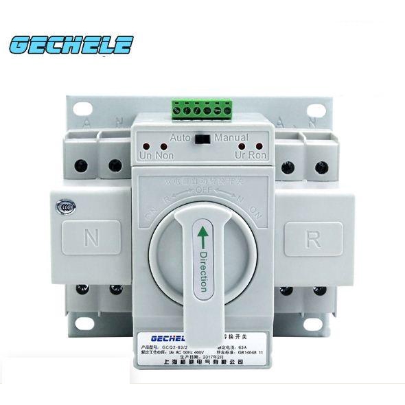 * * * Model: Gechele GC02 * * Tự động chuyển từ sử dụng điện lưới sang dự phòng khi mất điện lưới và tự động chuyển từ sử dụng điện dự phòng sang điện lưới khi có điện lưới * * sp tiên tiến hiện đại ko phải dùng tay đảo như cầu dao 2 chiều * * Quý khách có thể tham khảo link youtube vể sản phẩm: https://.youtube.com/watch?v=uU2aeG2P3lgThương hiệu GECHELE là một thương hiệt nổi tiếng trên thế giới chuyên dụng về thiết bị điện tự động hóa như ATS, Aptomat, cầu dao... Bộ đổi nguồn điện ATS 2P 63A có thể : - Chuyển nguồn điện tự động từ sử dụng nguồn điện ưu tiên (điện lưới) sang sử dụng nguồn điện dự phòng (máy phát, ắc quy) khi hệ thống điện ưu tiên (điện lưới) mất điện. Và tự động chuyển nguồn điện từ dự phòng (máy phát, ắc quy) sang sử dụng nguồn điện ưu tiên khi hệ thống điện ưu tiên (điện lưới) có điện. - Sử dụng thay cho cầu dao đảo chiều - Với nhà sử dụng hai công tơ điện để m chi phí tiền điện phải trả ta có thể áp dụng theo hai phương án: + chuyển nguồn điện thủ công bằng cách vặn nút có mũi tên (Direction) xoay sang phía đầu vào bạn đấu công tơ thứ 1 hoặc