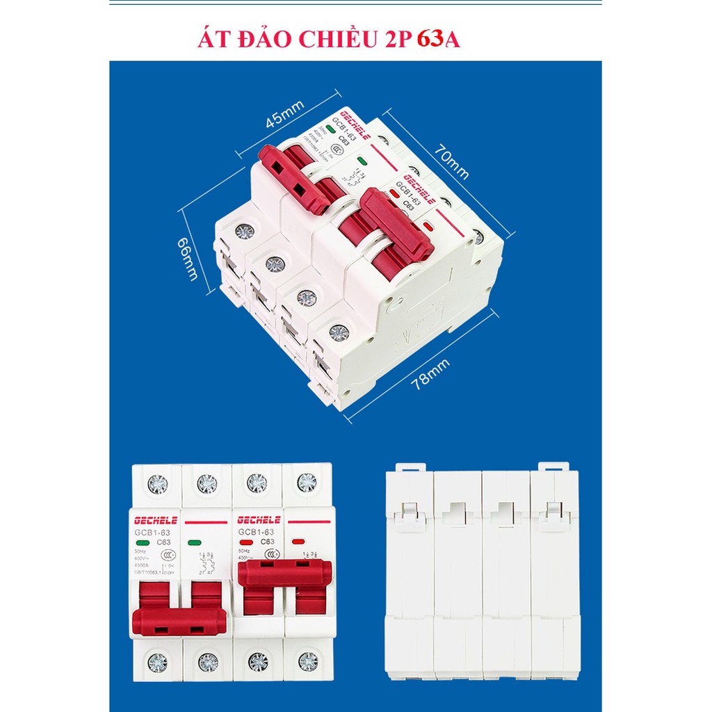Giới thiệu Attomat đảo chiều 2P 63A, Cầu dao đảo chiều 2P 63A GCB1-63 Gechele
