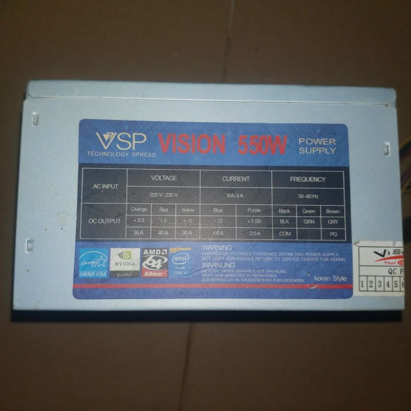 Máy tính & Laptop > Linh Kiện Máy Tính > Nguồn Máy Tính || Nguồn ATX Vision 550W (đã sử dụng)Còn hàng