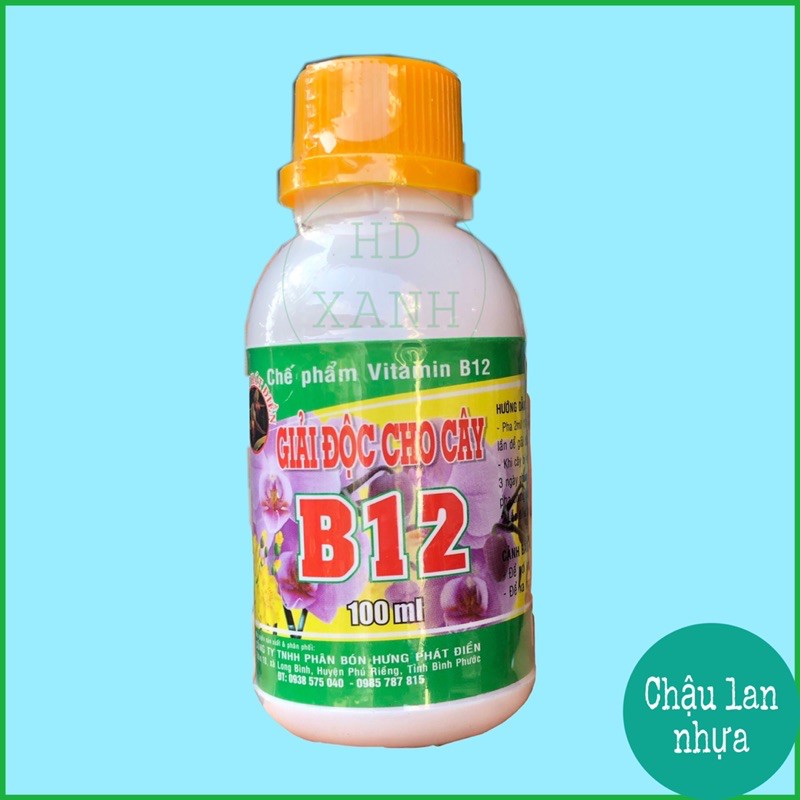 Phân bón giải độc cho cây trồng Vitamin B12- lọ 100mlPhân bón giải độc, chống sốc cho cây lan và các loại cây kiểng, tái tạo tế bào mới khi cây thay chuyển chậu, chống sốc cho cây khi vận chuyển đi xa, giải độc phân