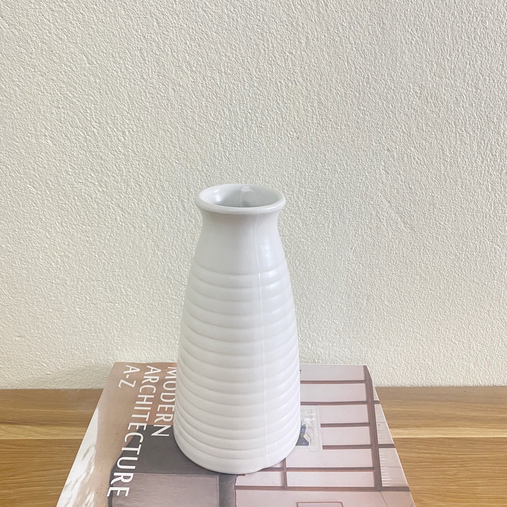 Nhà cửa & Đời sống > Trang trí nhà cửa > Bình trang trí || Bộ Ba Lọ Hoa Trang TríDecorDáng Sọc Men Trắng Pastel Bình Bông Bát TràngCòn hàng
