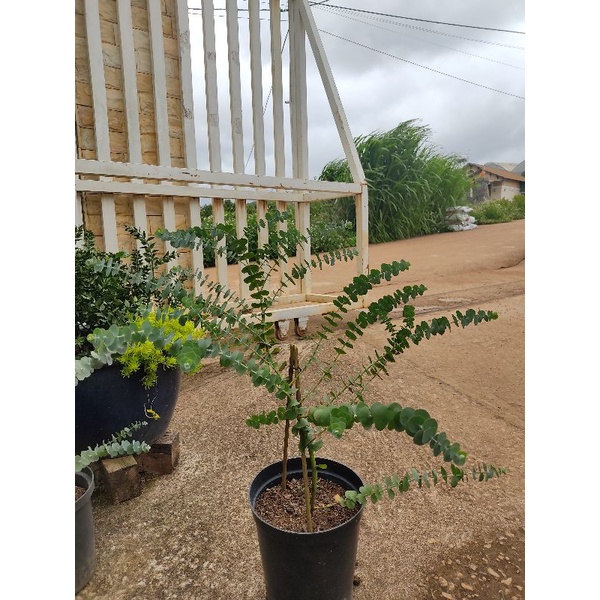 Cây baby blue silver dollar nổi bật với màu bạc xanh của lá, cây có mùi tinh dầu dễ chịuNgoài việc trồng làm cảnh, cây còn được sử dụng nhiều trong việc cắt cành để cắm hoa trang trí