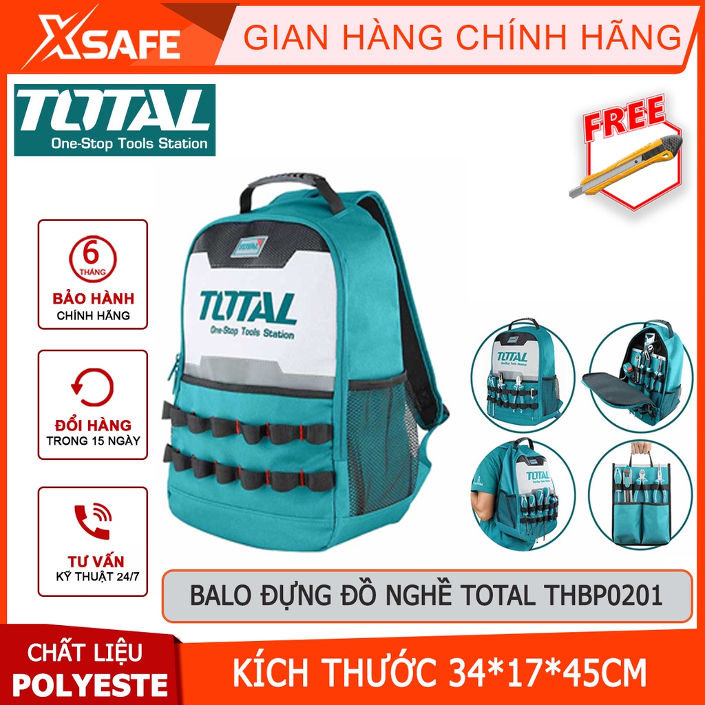 Nhà cửa & Đời sống > Dụng cụ & Thiết bị tiện ích > Dụng cụ > Hộp dụng cụ cầm tay || Balo đựng đồ nghề TOTAL THBP0201 Ba lô công cụ chất liệu polyester oxford 600D, kích thước 34*17*45cm - [XSAFE]Còn hàng