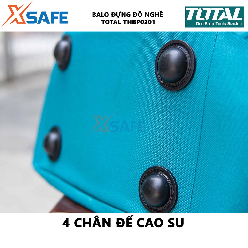 - Balo đựng đồ nghề TOTAL THBP0201 được làm từ chất liệu sợi đặc biệt có khả năng chống vật nhọn đâm thủng gây hư hỏng cùng những đường may tỉ mỉ giúp túi không bị rách hay bung chỉ, vô cùng chắc chắn, có độ bền tuyệt đối cho thời gian sử dụng lâu dài.