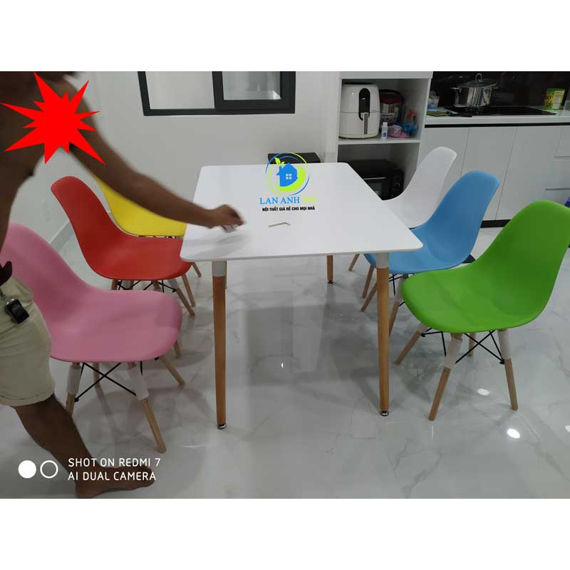 Với sản phẩm bộ bàn ăn 4 ghế nhập khẩu eames hiện đại đẹp giá rẻ LA-BBA05 nhập khẩu chúng tôi hàng luôn sẵn đủ màu số lượng lớn để cung cấp cho khách hàng khi có nhu cầu với giá thành tốt nhất. Còn chần chừ gì mà không gọi ngay cho chúng tôi để hỏi và đặt hàng mẫu bàn ghế ưng ý cho bản thân, cho gia đình , cho doanh nghiệp của chúng ta đúng ko ạ?